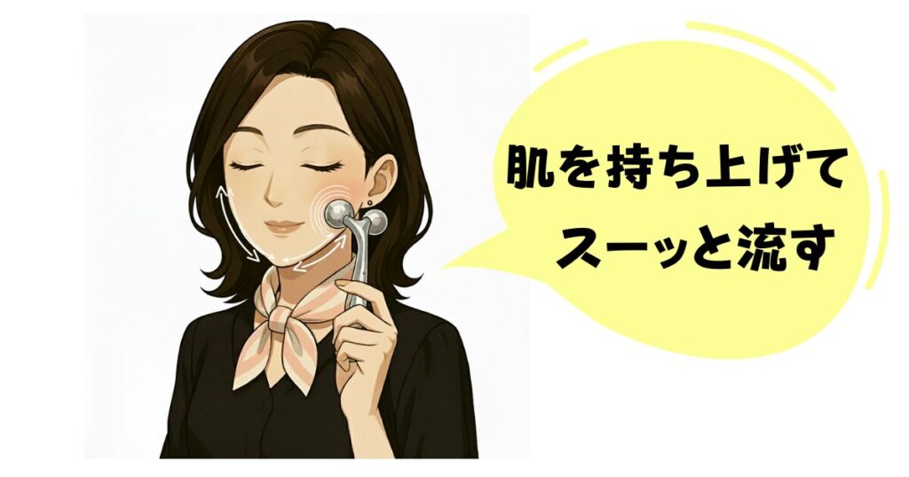 力でグイグイ押すのではなく、肌の表面をすべるように使います。