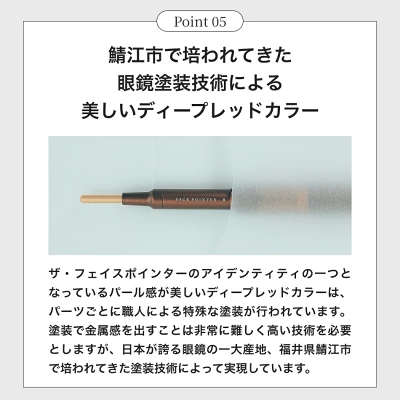 フェイスポインターの先端は、ステンレス銅、ピンクゴールドメッキ、かたい樹脂の三重構造。