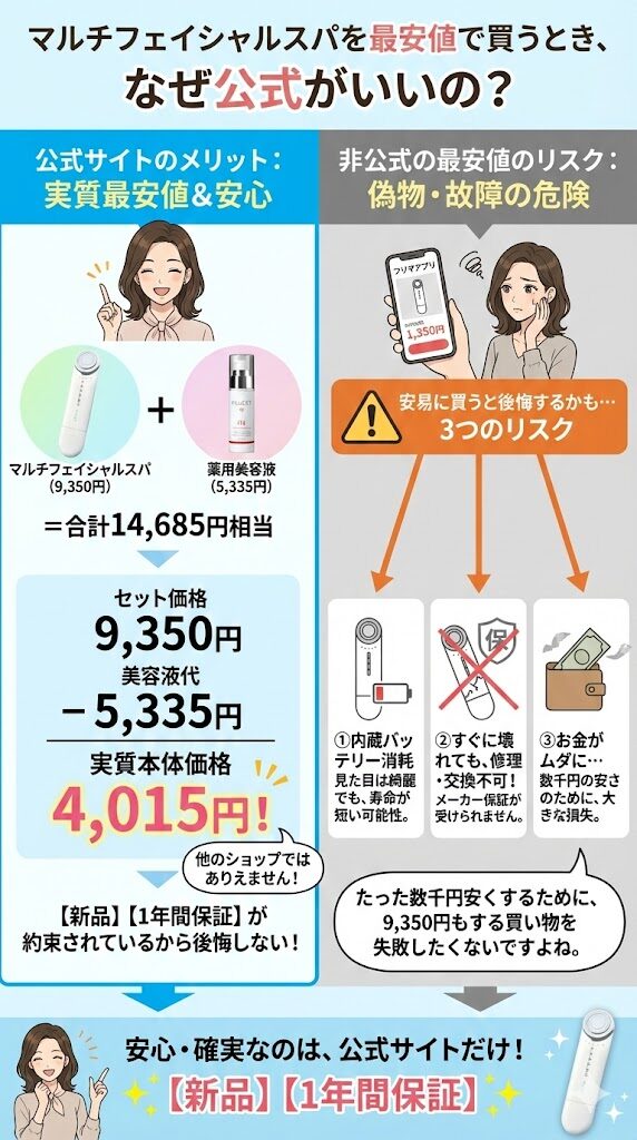 マルチフェイシャルスパを最安値で買うとき、なぜ公式がいいの?